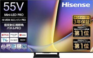 詳しくは→ハイセンス55V型 55E80R Mini LED PRO 2.1.2ch 量子ドット 倍速パネル ネット動画 2025年モデル