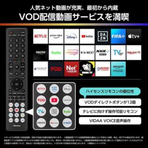 スマートテレビ機能:Fire TVやGoogle TVなどのスマートOSは非搭載だけど、独自のUIで快適に操作できるよ。リモコンから直接アプリ起動もできて便利!