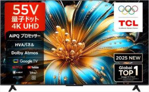 詳しくは→TCL 量子ドット 55T6C Dolby Atmos 2025年モデル ネット動画 ゲーム対応