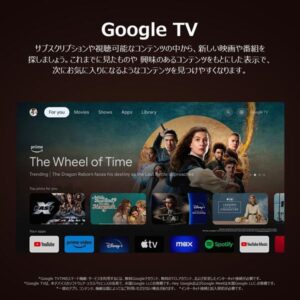 Google TV は Android TV の進化版で、以下のような主要アプリを幅広くサポートします: