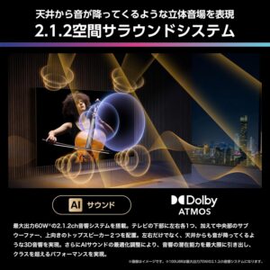 この構成により、テレビ単体としては低音の厚みがしっかりあり、映画・アニメ・スポーツで迫力を感じやすい仕上がりです。