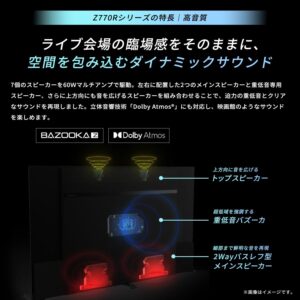 この2つが組み合わさることで、65Z770R は テレビ単体としては非常に高い音響性能を発揮します。