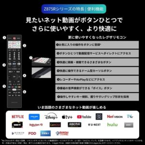 REGZA公式のネット動画対応ページでは、65Z875R(Z8シリーズ)が 多彩な動画配信サービスに対応 と明記されています。