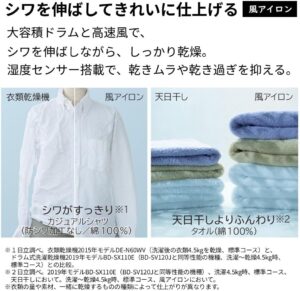日立BD‑SV120JLは、シワを伸ばす「風アイロン」