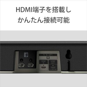 接続面では HDMI eARC に対応し、テレビとケーブル1本で高品位音声を伝送可能。Bluetoothにも対応しており、スマホから音楽再生も簡単。省スペースで高音質・立体音響を実現する、コスパに優れたサウンドバー。
