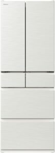 日立 R-H54X は、幅65cmで設置しやすいのに540Lの大容量を備えた6ドアフレンチドア冷蔵庫です。全段チルド保存が可能な「まるごとチルド」、肉や魚を約−1℃で鮮度よく保つ「特鮮氷温ルーム」、大容量の「ひろin冷凍プラス」など、食材の鮮度維持に特化した機能が充実。さらに「うるおい野菜室」で乾燥を抑え、野菜をみずみずしく保存できます。省エネ性能も高く、家族の多い家庭でも使いやすいバランスの良いモデルです。