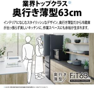一般的な大容量冷蔵庫は奥行が深くなりがちですが、SJ‑MF55P‑Hは業界トップクラスの奥行き薄型63cmモデルとして設計されています(545Lクラス)。